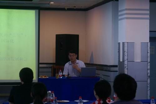 首先,由科研部汪锋副处长致辞。他介绍了当前人文社科发展的趋势和我校近年来取得的科研成绩。进入十二五规划以后,科研评价多元化,更加注重协同创新和系统发展。学校近几年科研成绩斐然,社科基金连续四年进入全国前十名。他同时也指出了我校科研方面的不足如投入产出不均衡,学校科研质量有待进一步提高,学术氛围有待进一步加强。